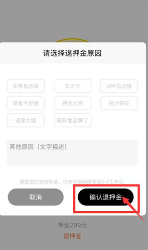 (5)选择退押金原因后(最少选择一项)点击确认退押金即可(见上图)