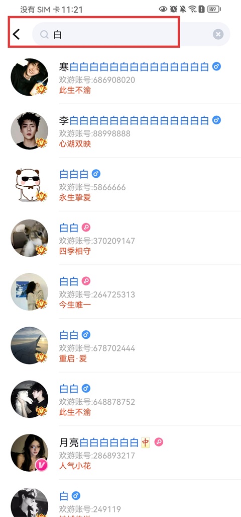 3、在搜索框中输入好友的昵称或ID,找到目标好友的账号;