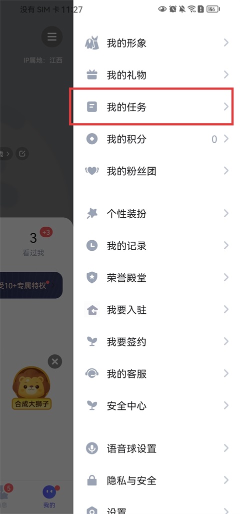 2、在菜单中选择【我的任务】选项,进入任务界面;