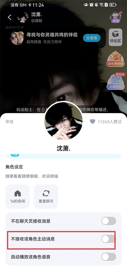 2、在个人资料页中,找到并点击【不接收该角色主动消息】选项,即可停止接收该好友的消息通知。