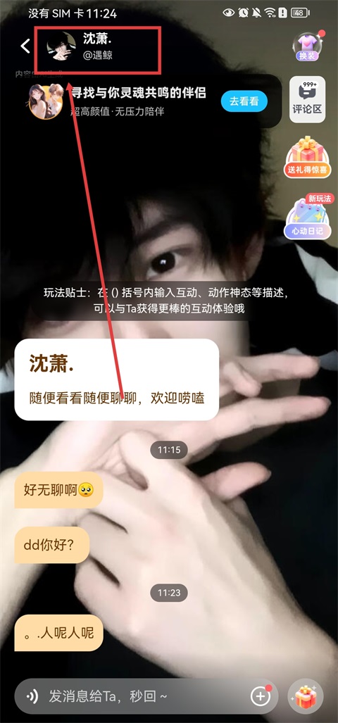 1、打开欢游App,进入目标人物的聊天界面,点击该人物的头像,进入其个人资料页;