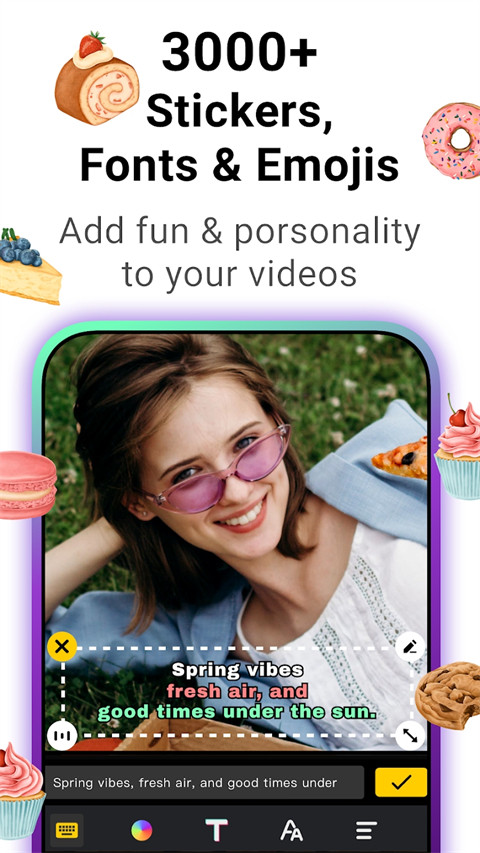 1、多种新潮的动画贴纸和表情包,为您的视频增加趣味性。