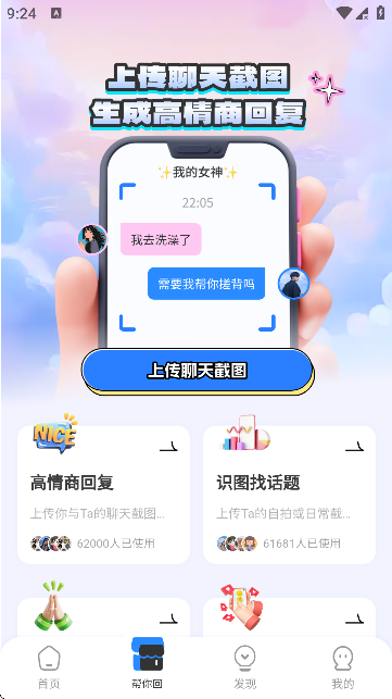 4、然后在【帮你回】这里能为用户提供传图生成高情商回复。