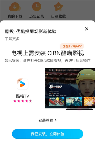 4、如果你安装了CIBN酷喵影视就点击【我已安装,立即体验】。