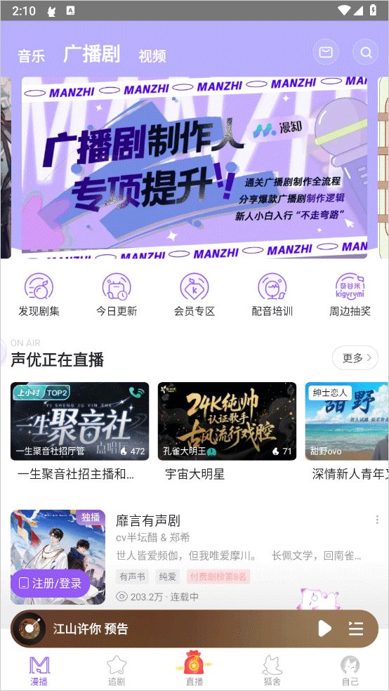 1、打开软件,进入到用户界面,选择一个广播剧点击进入。