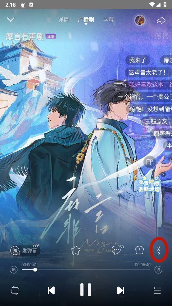 4、在播放广播剧的同时不仅可以看到字幕,还可以在上分看到小伙伴们发送的弹幕;