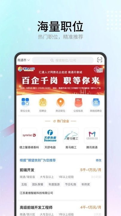 【职位更全面】日均在线职位十万以上,南通求职一站式。