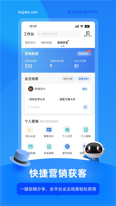 酷家乐设计师app是专为设计师推出的一款装修设计服务软件,软件为用户提供海量设计效果图、装修案例和各种装修设计课程,软件界面简洁功能强大,数据与电脑端相同,方便数据管理,此外接入间具备快速预览和效果图渲染功能,能够提供全景图,渲染效果图,是装修设计师的强大助手,还有业主社区功能,零距离了解业主装修需求,锻炼相关技能。