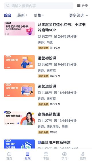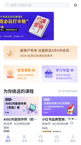 三节课运营课程软件主要是帮助用户学习产品运营的平台,该软件不仅拥有丰富的线上课程资源,让用户了解运用学习的真正知识,还包含了大量的实现题库,用来巩固用户所学的专业技能,有需要的小伙伴可以在本站免费下载体验。