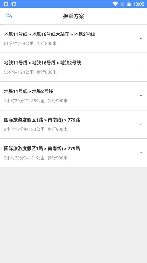 换乘查询功能可根据用户设定的起点和终点提供多个换乘参考方案