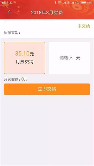 党员可通过我的党费选项,在线交纳党费和查看交纳记录。首次交纳需要绑定银行卡,并设置交易密码。