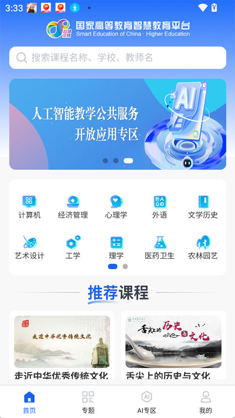 智慧高教app拥有海量的优质课程,覆盖了计算机、心理学、文学历史、经济管理等多方面的学科,为用户提供了专门的学习平台,并且该软件还有ai辅助学习,为用户答疑解惑,提高了用户的学习效率,感兴趣的小伙伴可以在本站下载体验。