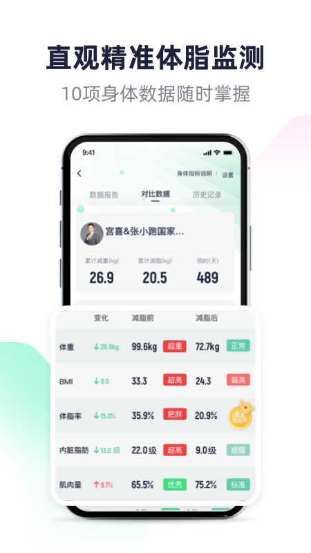 2、多维度减脂测评,剖析身体状况减脂更简单。