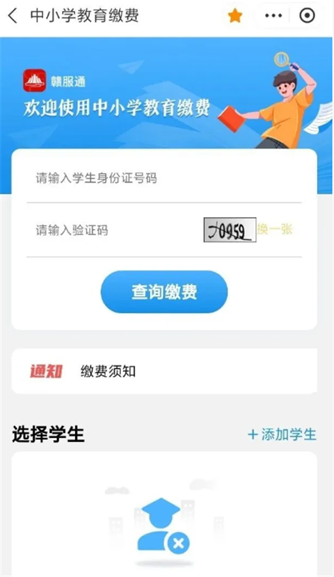 2、输入学生身份证号码和验证码,按页面提示完成缴费