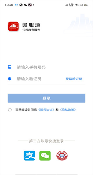 1、打开赣服通养老认证app后,新用户需使用手机号进行注册登录,同时支持第三方快捷登录;