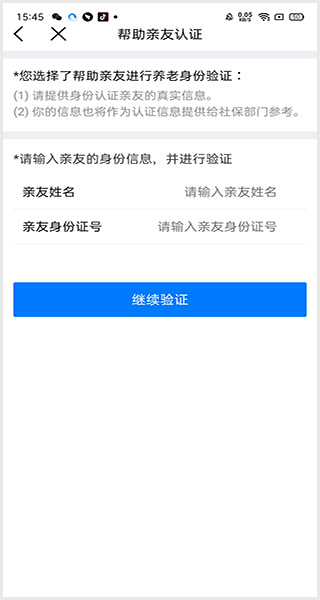 5、若本人认证,系统直接获取个人信息;若帮亲友认证,按提示输入退休人员信息。退休人员“刷脸”完成实名认证后,得到反馈。