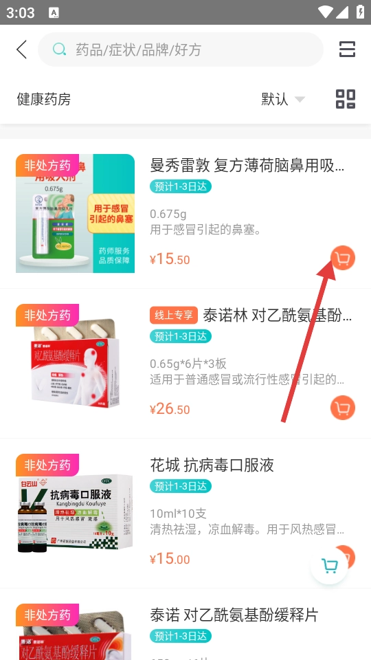 3、在感冒药品列表页面,选择目标药品,进入药品详情页面。