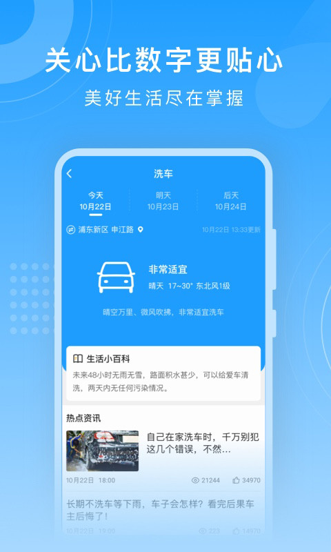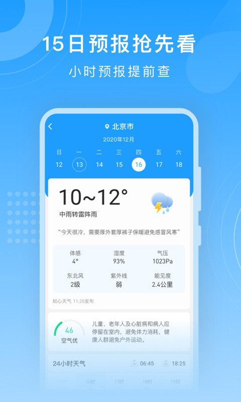 知心天气预报app是一款专业,功能齐全的天气查询软件,软件依托全国多个气象数据源,为用户提供全国大部分城市的实时天气预报,以及天天气预测,其中当天天气预测可精确到分钟级,还有空气质量同步预报,软件界面设计美观,还有自动语音播报天气功能,提供穿衣,紫外线防护,运动指数,为你的生活出行保驾护航。