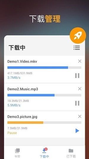 视频下载器app是一款功能强大的资源下工具,如果你在浏览网页时想要下载当前页面的视频资源,那么这款软件将会给你很大的帮助。无需复杂的操作,不受平台限制,软件会自动识别当前页面的视频和音乐,一键即可轻松下载,下载进度也可实时查看,感兴趣的话就快来下载体验吧!