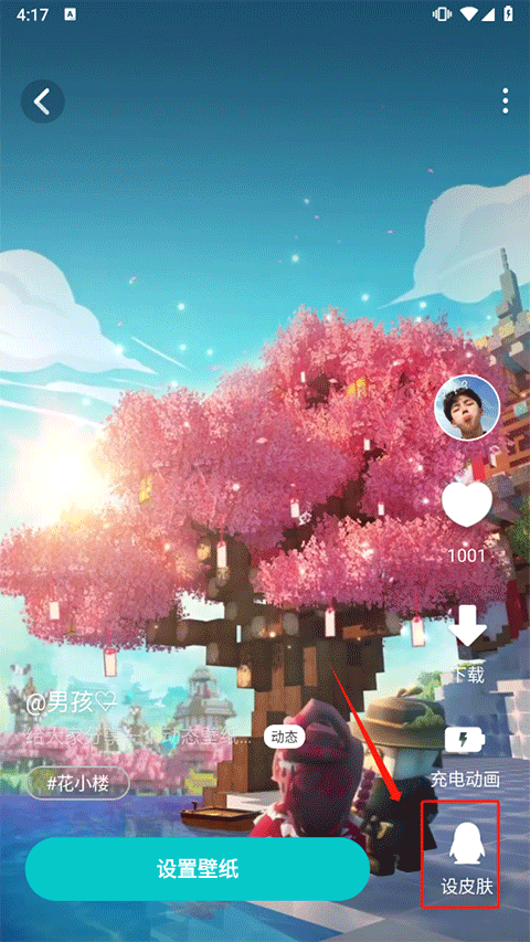 2、然后在该壁纸内点击右下角设为皮肤