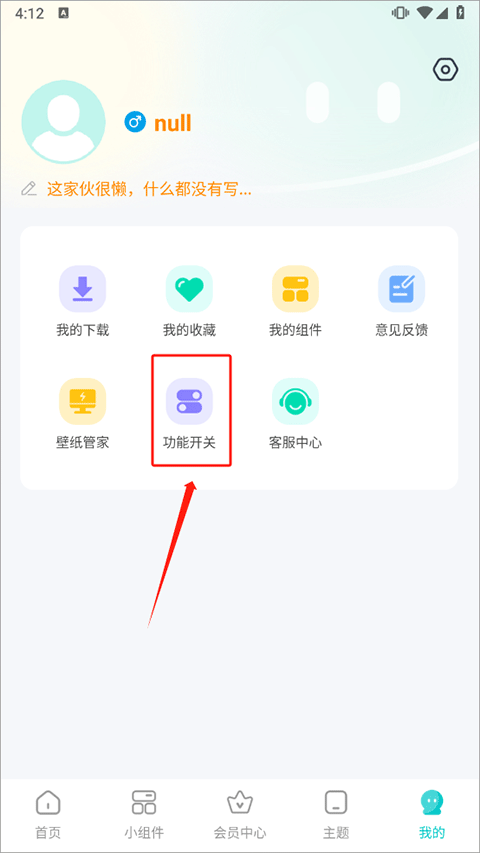 1、在我的界面内点击功能开关