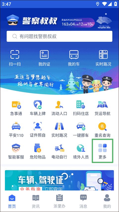 “警察叔叔”是浙江省杭州市公安局面向全体市民推出的一款智慧警务服务app,涵盖车管业务、信息服务、出入境、人口管理四大类,共二十项业务。