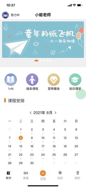 4、幼师可通过小能老师查看最近课程,班级体质测试报告,园区公告等信息