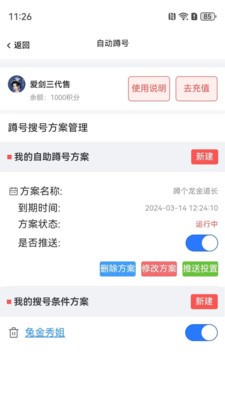 根据需要就可以新建自己的自助蹲号方案,轻松制定自己的方案,实时进行蹲号。