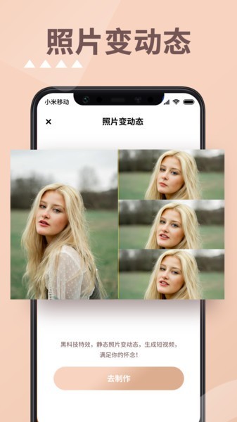 通过技术将静态照片一键还原成为动态照片、美化动态GIF,通过照片动态处理GIF技术实现动图模式,让照片动起来。