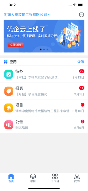 优企云app是一款专为解决员工线上办公的问题而设计的软件。这款软件上可以看到企业的项目规划和部门的会议安排。这款软件也可以记录员工的每日考勤和员工的代办任务。软件上支持你在职场中所有你需要申请的事务,让你直接线上申请办理,以免多出奔波办理。