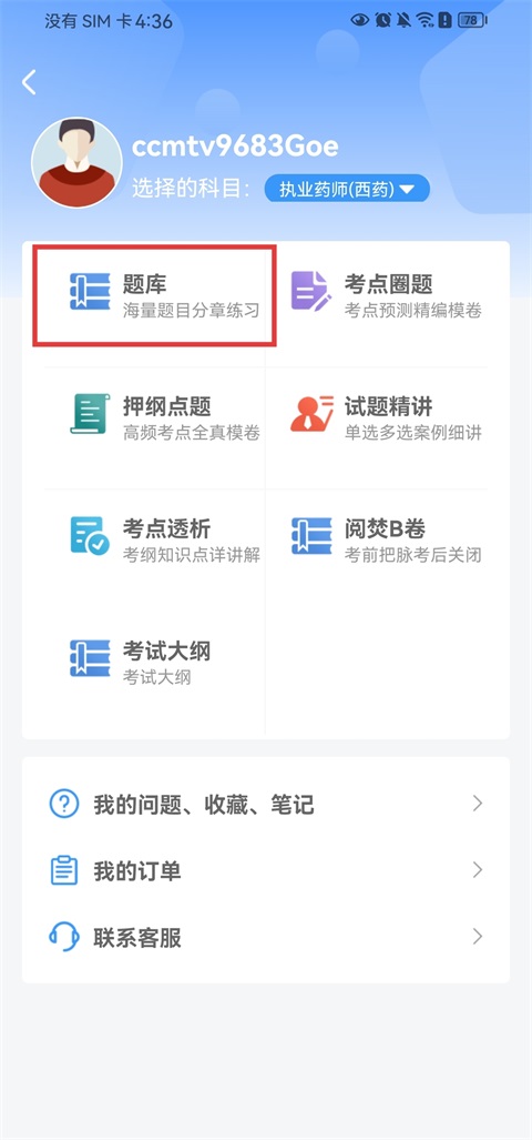 4、选择【题库】进入题库页面;
