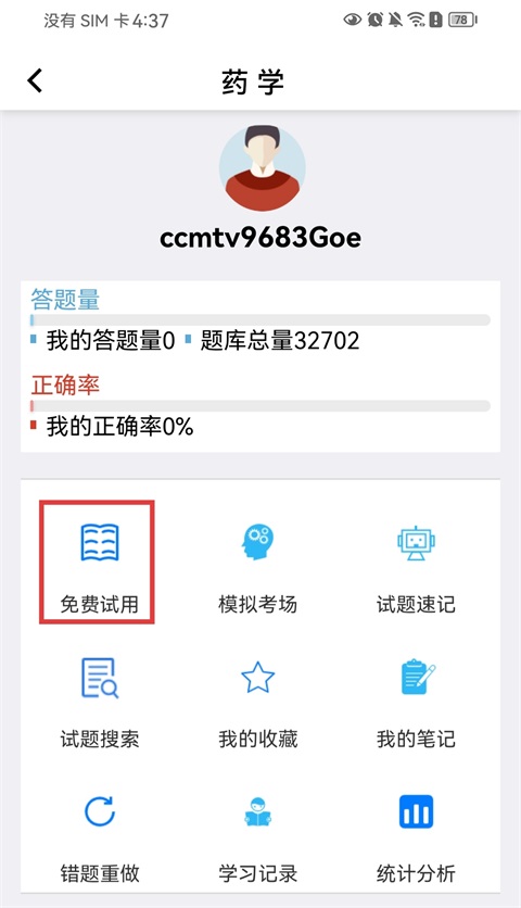 5、点击【免费试用】按钮,开始免费使用题库进行练习;