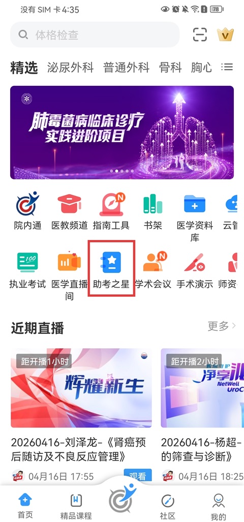 1、打开CCMTV临床频道App,点击【助考之星】选项进入;