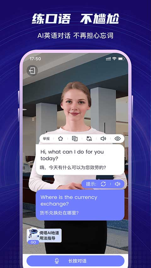 1、英语数字人“倚塔”,全景虚拟场景,随时随地口语陪练。