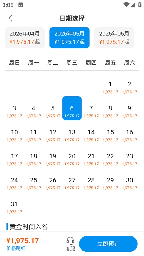 3、进入景点详情页后,选择具体的购买日期或出游时间;
