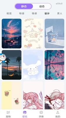 不同的壁纸以分类的方式呈现,帮助你找到情感、设计、人物和物语等壁纸更加方便;