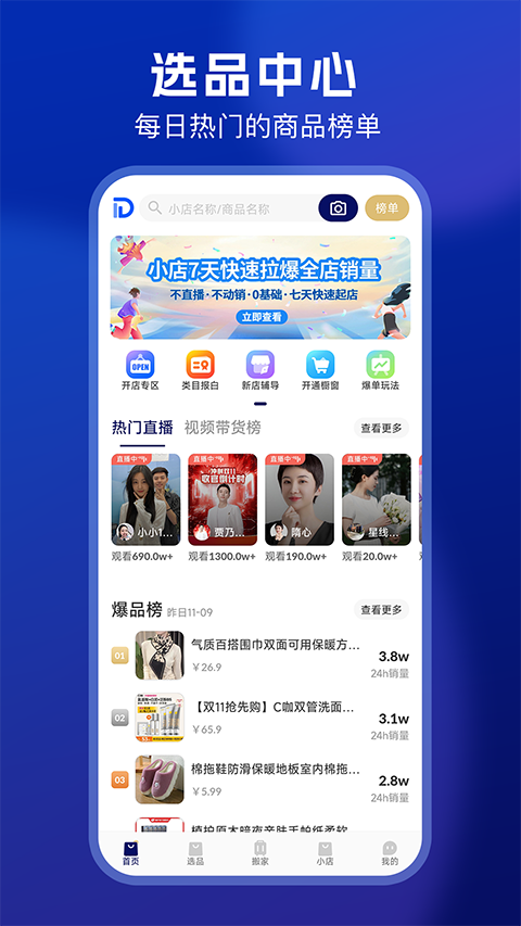 内置选品中心,汇集了各样热门的商品榜单,用户可以随时查看了解。