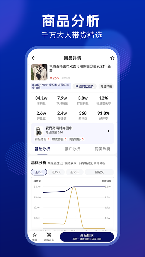 提供了商品分析功能,可以帮助用户更好的全方面了解商品的各样信息。