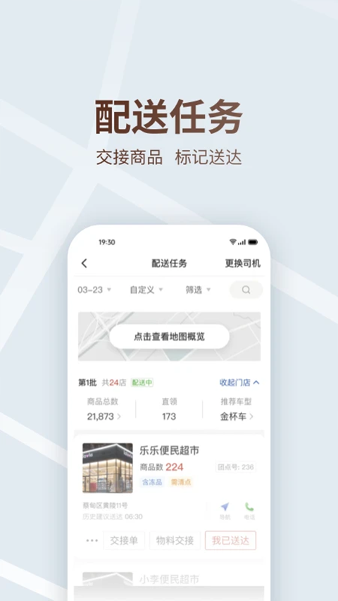 多多买菜司机版app主要是为司机师傅提供的配送服务软件,司机师傅可以使用该软件查看订单详情、配送起始地点,方便用户挑选最佳路线,从而更快速的将顾客们的商品安全送达,并且所有的交易都是在线上进行的,公开透明,不存在虚假交易。