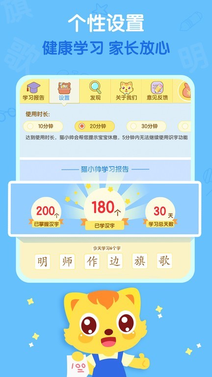 猫小帅识字幼儿识字软件,搭配有趣的儿童闯关游戏,寓教于乐,帮助孩子快乐识字,为培养良好阅读习惯和上小学打下坚实基础。