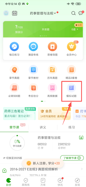 3、登录后进入主界面找到红色模拟试题选项,点击进入对应练习模块。