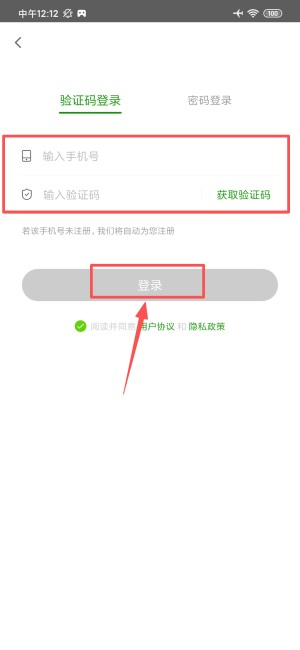 2、在验证码登录页填写手机号与验证码,确认协议后点击登录按钮完成。