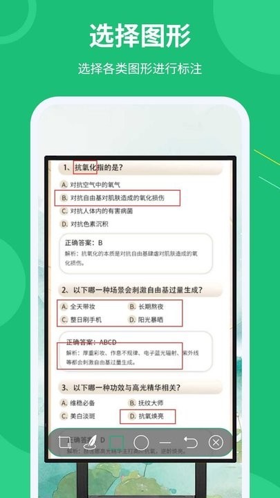 4、矩形、原型、曲线、直线等多种画笔,帮助您网课标记重点