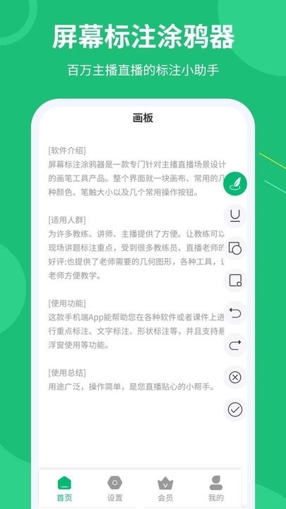 屏幕标注涂鸦器app是一款专为屏幕标注涂鸦而设计的软件。这款软件可以在图片上批注,也可以是背景文案的涂鸦。可以是学生资料上的添加,也可以是老师讲解时屏幕上的注释。软件支持将当前屏幕内容进行保存到相册,让你随时随地都能查看。