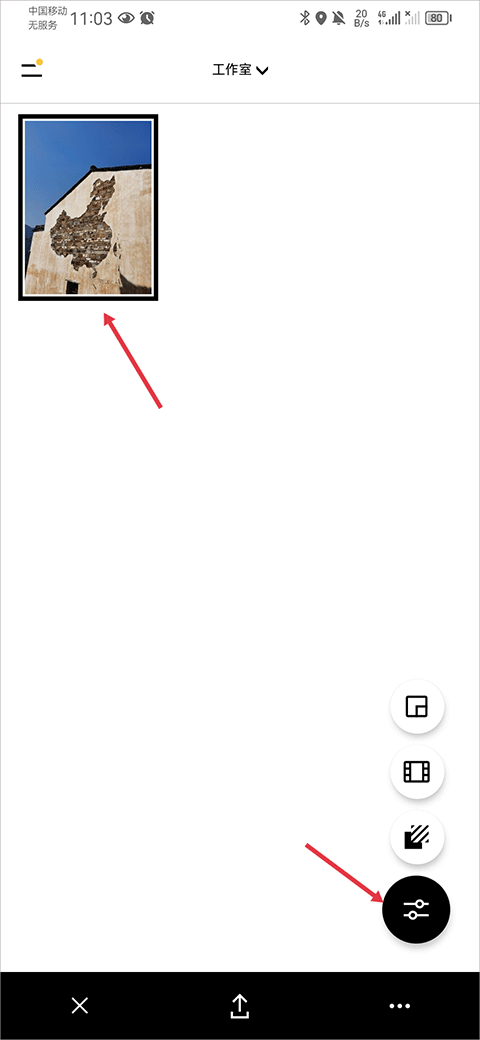 1、打开app后,首先在工作室界面中点击右下角+号导入按钮