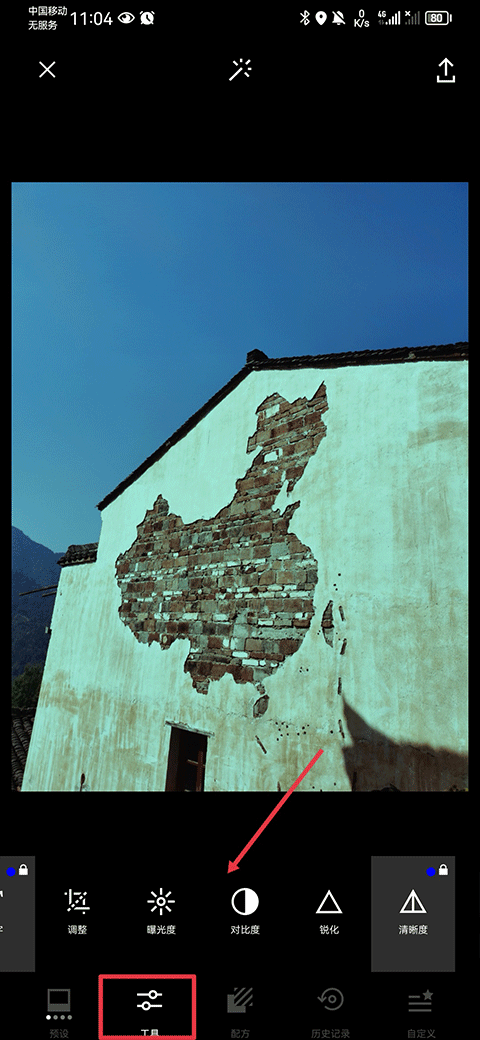 6、全部编辑后点击右上角导出按钮,并选择保存到相册即可,或者选择发布到VSCO,朋友圈等都可以