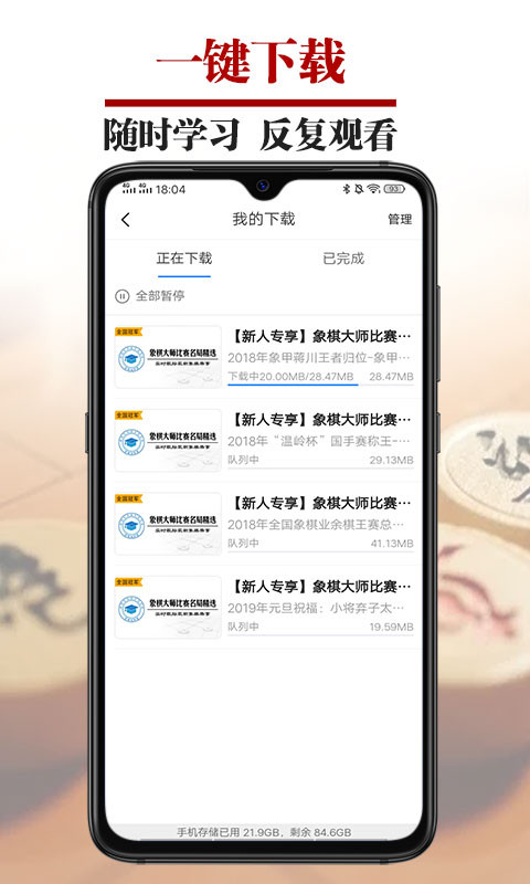 课程全面,覆盖象棋开局、中局、残局及全局讲解,根据个人情况针对性学习。