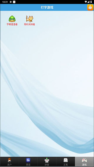5、点击屏幕下方的游戏按键,即可进入游戏打字的练习界面,有字根消消看和简码消消看两个游戏等你来玩。