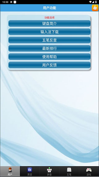 1、进入软件之后可以看到软件的用户功能,比如键盘简介、输入法下载等等。