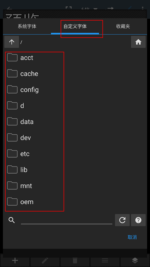 4、然后选择自定义字体,并在手机文件夹中找到包含(.ttf)字体的文件夹即可